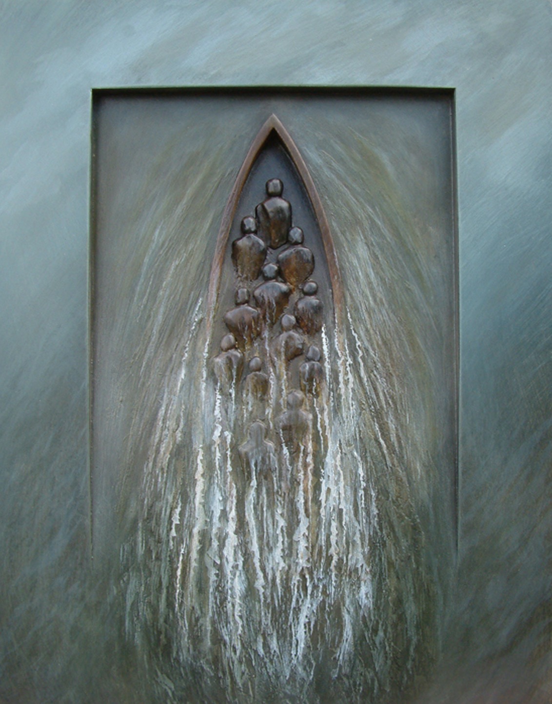 Image: Douglas Robertson,Emigrants – Wake, Carved painted wood on board