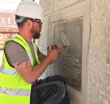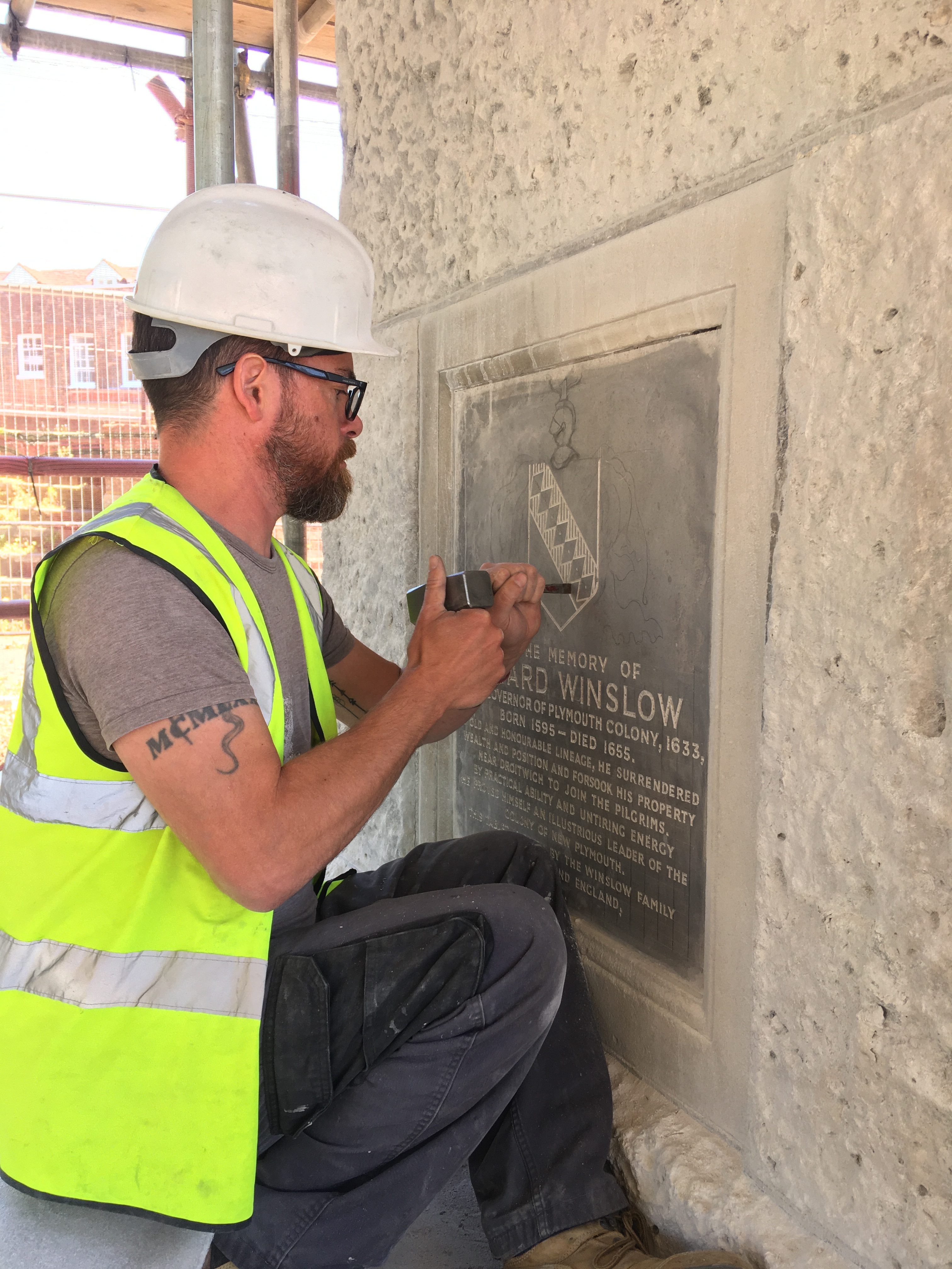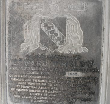 Built of Portland stone and about 50 foot tall, the memorial has eight plaques dedicated to the memory of pilgrims, passengers and crew, including the Hopkins family, Edward Doty and John Alden, who were all from the local area.
