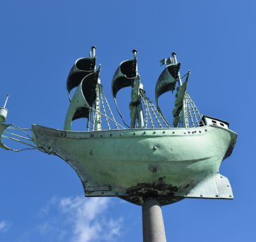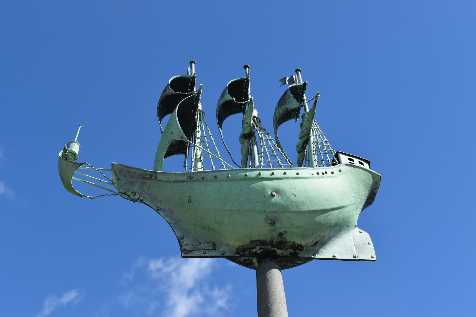 The bronze ship that sits atop the memorial is often thought to be a weather vane, it is in fact in a fixed position pointing in the direction the ships would have set off for the New World.