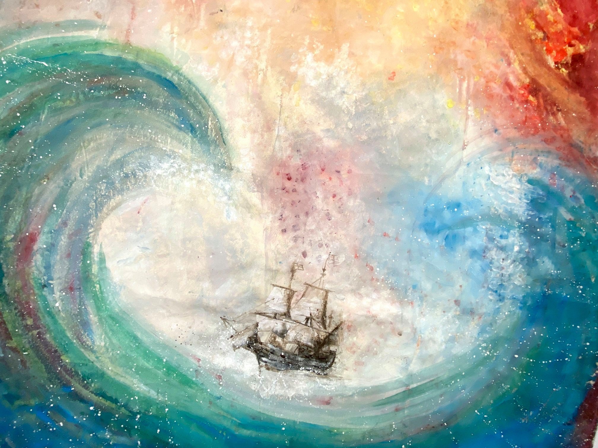 90 children collaborated with the artist, to create this largescale painting. The work, which took inspiration from the sea and the Mayflower voyage, was displayed in Southampton City Art Gallery throughout the summer of 2020.